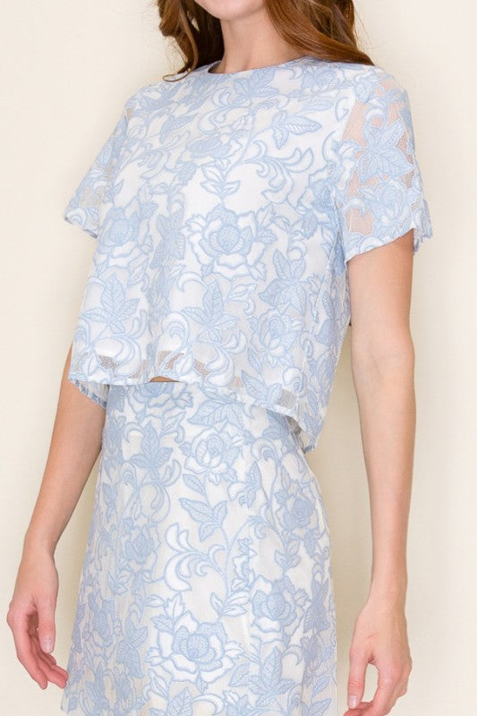 Floral Jacquard Front Bow Detail Mini Dress
