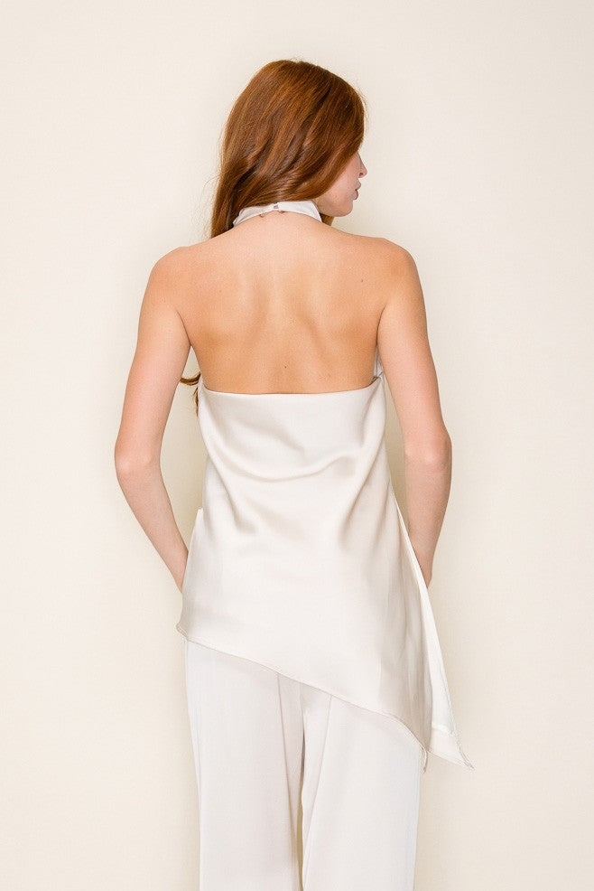 Asymmetric Hem Halter Neck Open Back Top