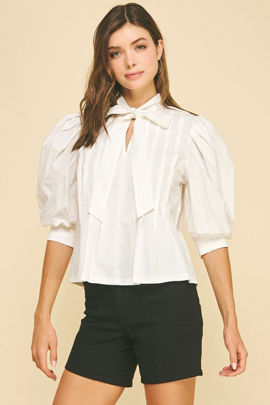 Clara Tuck Detailed Blouse Top With Tie Detail